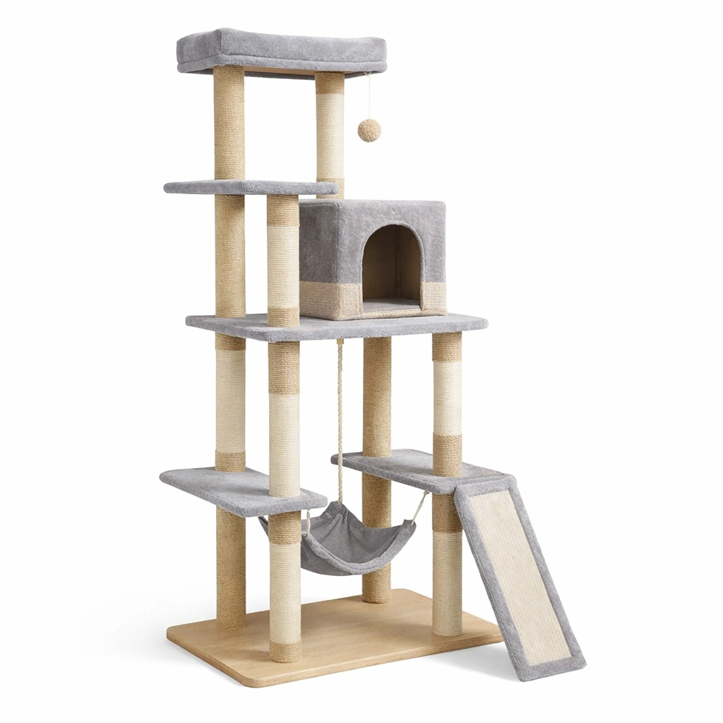 Kratzbaum Plüsch Sisal Holz Grau