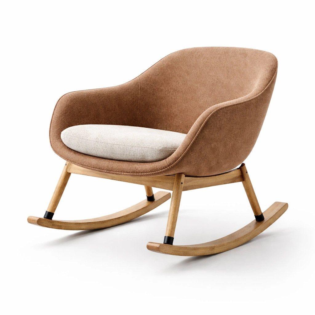 Schaukelstuhl Stoff Eichenholzrahmen Hellbraun Beige